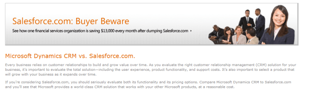 I was directed to a new website this morning that I didn’t know existed. There was substantial information on how a company was saving $13,000.00 a month by moving from Sales Force dot Com to Microsoft CRM.