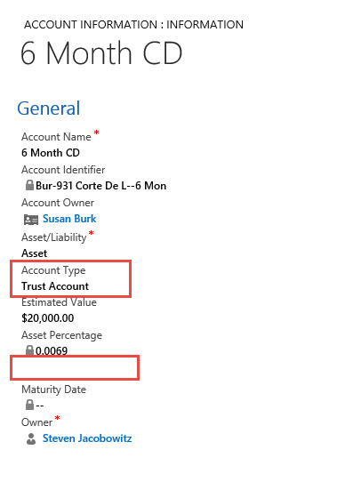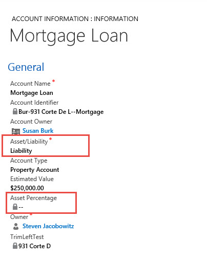 Now open an Account Information record where the Asset/Liability = “Asset”