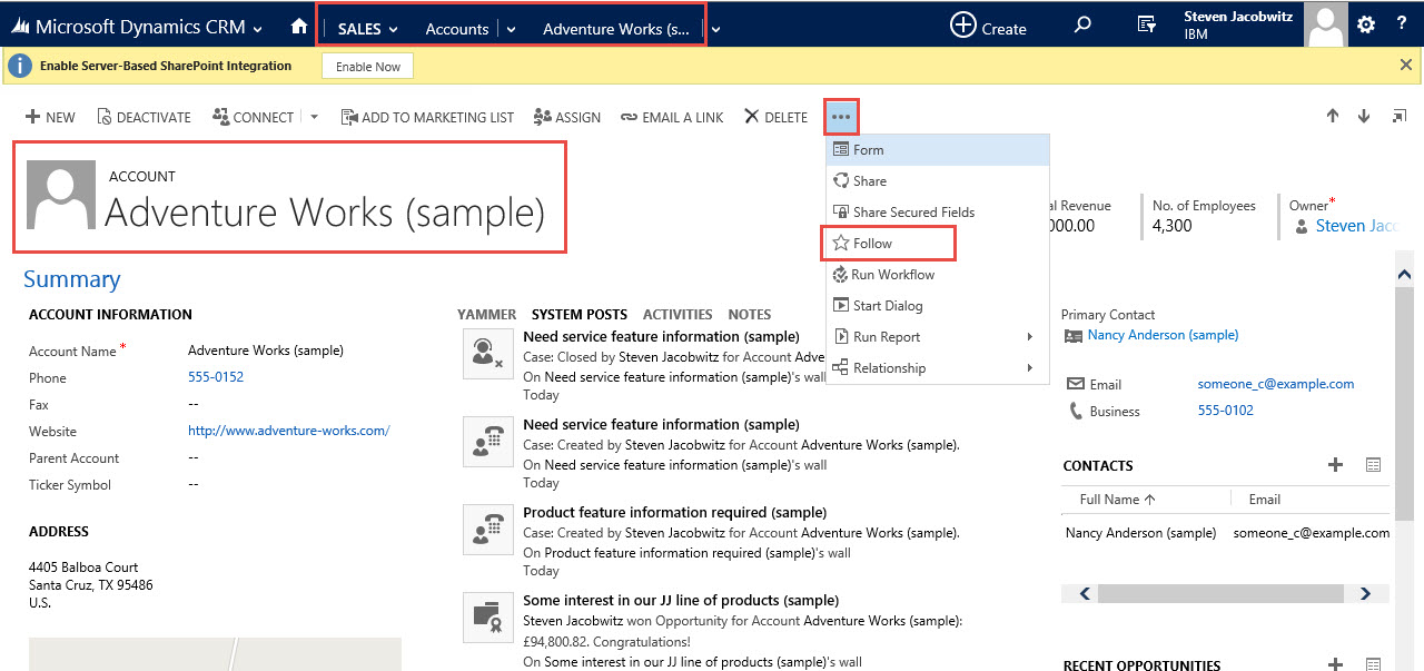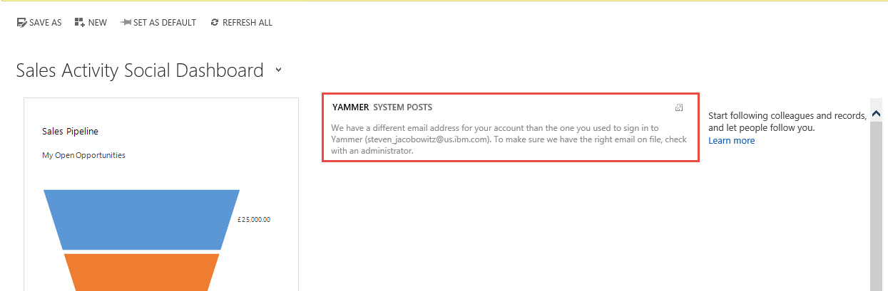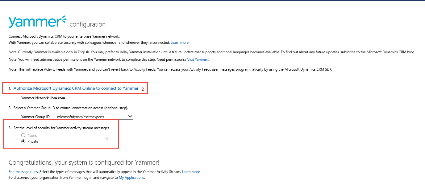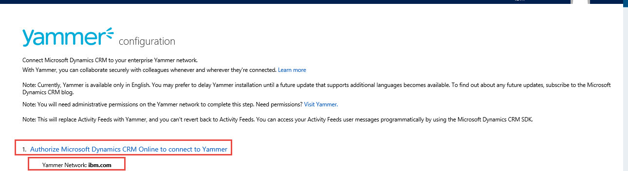 At IBM we are using Yammer internally for social collaboration. I wanted to test the Integration between Microsoft Dynamics CRM 2015 and Yammer. This functionality has been available since the “Polaris” (2013) release of Microsoft CRM, although, I had never been focused enough to address this integration.