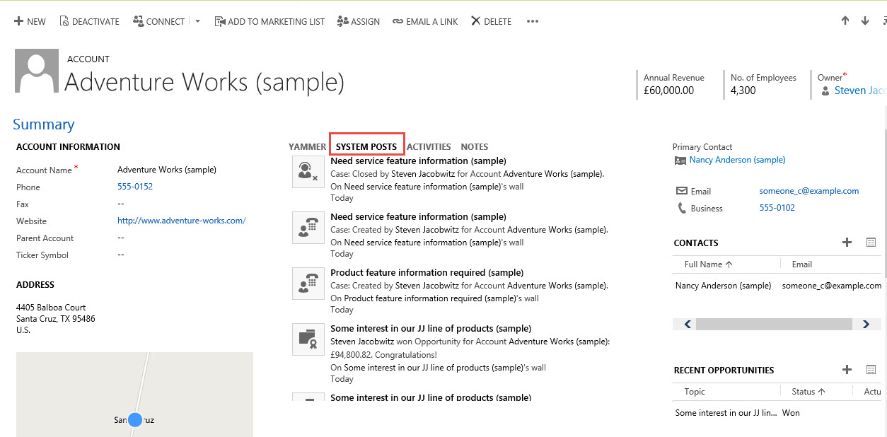 Integration with Yammer will allow you to not only track changes occurring within the CRM database but will also allow you to link to your public or private Yammer account.