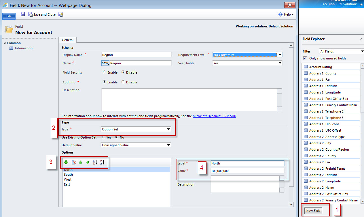 - Re-usability – In CRM 2011 you can create an Option Set that can be accessed from several entities although in order to maintain the set the user will still have to have access to the Customizations Section of CRM, therefore it might be unacceptable based on your company’s policy of governance